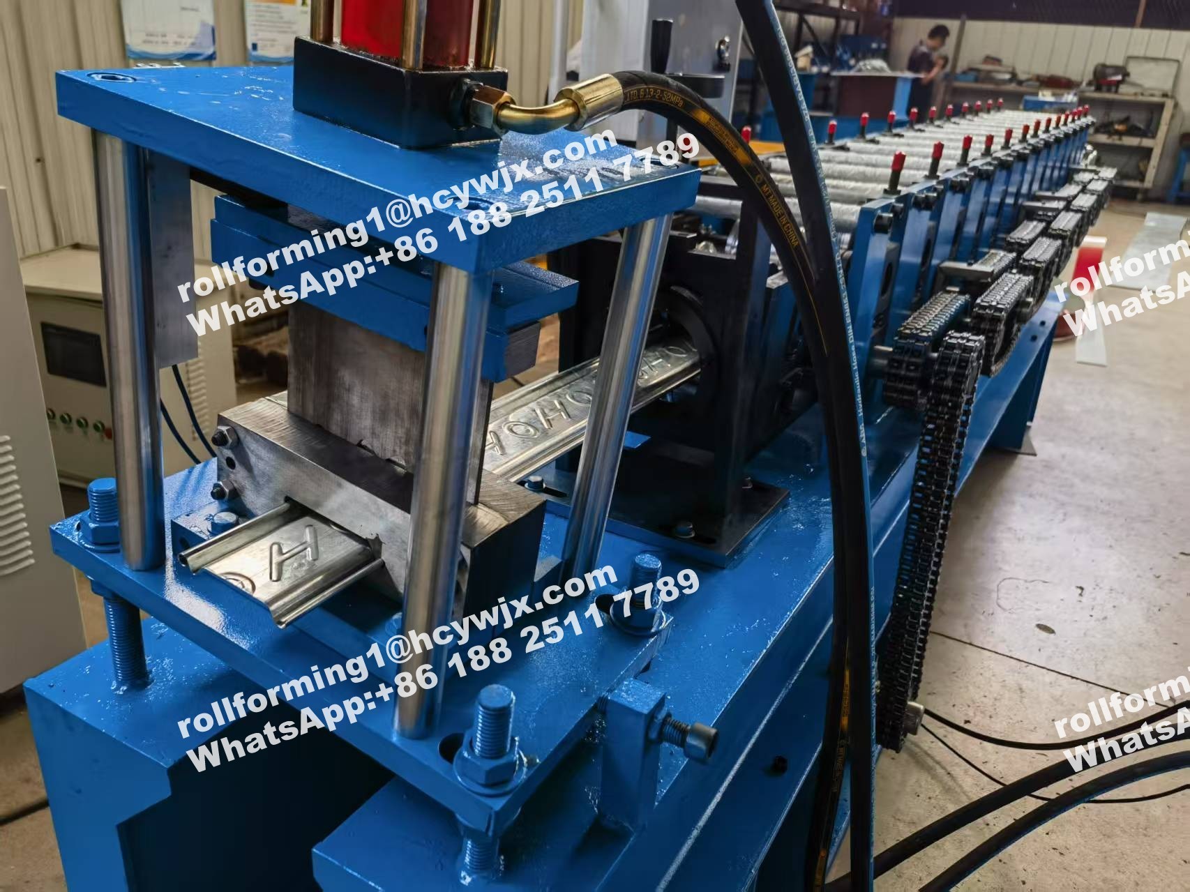 उपकरण घटक: मानव निर्मित अनकॉइलर-रोल बनाने की मशीन-कंप्यूटर नियंत्रण प्रणाली-हाइड्रोलिक नियंत्रण प्रणाली-कटिंग